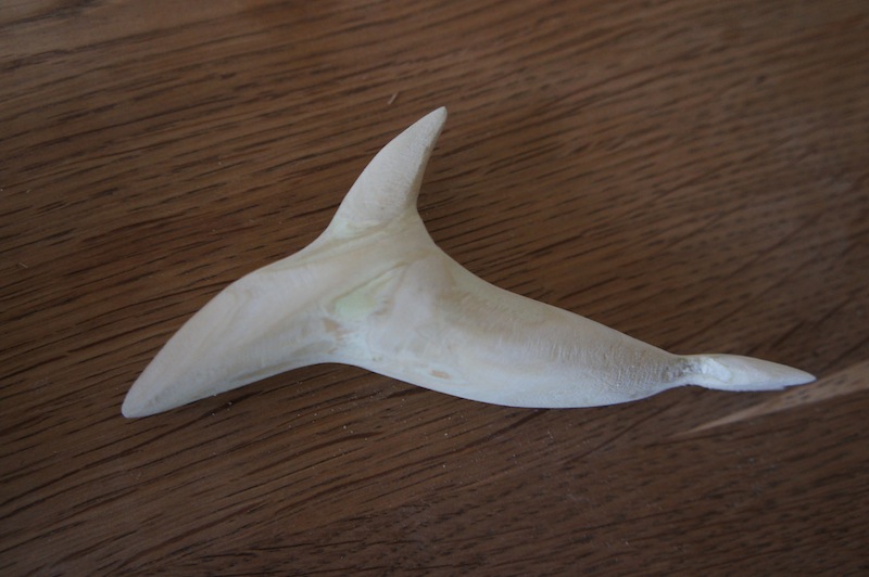 Nun schnitzen wir die Schnwanzflosse detailiert aus und geben ihr die typische Kerbe.