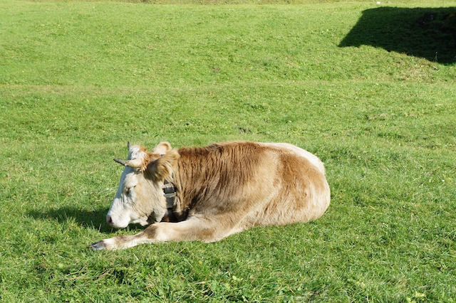 Auf meine Frage wie es zu einer Kuattacke kommen kann, meinte der Naturbursche :”Keine Ahnung wie so was Schlimmes passiert. Da muss wahrscheinlich einiges zusammenkommen. Mich hat in den vergangenen vierzig Jahren noch nie eine Kuh angegriffen!” Grundsätzlich sind Kühe Fluchttiere und vom Charakter her eher gemütlich veranlagt. “Eine Kuh will vor allem eines: Ihre Ruhe und genug zum Fressen haben.” Wenn es zu einer Kuhattacke kommt, dann ist es das letzte Mittel zu dem das Tier verzweifelt greift. Was viele Wanderer nicht wissen, das Blickfeld von einer Kuh liegt bei etwa 270 Grad. Wir Menschen kommen auf lediglich ein Blickfeld von 180 Grad. Doch dieser Weitwinkel, wie die Fotografen sagen, hat einen großen Nachteil für die Kuh: Sie sieht das meiste verkrümt. Je weiter ein Gegenstand am Rand vom Blickfeld der Kuh ist, um so deformierter erscheint er. Bis zu sechs Meter sieht die Kuh die Dinge genau. Dann nimmt die Sehfähigkeit rapide ab. Doch das große Blickfeld hat noch einen negativen Aspekt: Die Tiefenwahrnehmung der Kuh ist unglaublich schlecht. Vor allem Schatten ängstigen die Kühe. Offensichtlich kommt ihnen ein Schatten wie ein Loch vor. Um das Ganze genauer zu betrachten hebt und senkt die Kuh den Kopf. Wenn ein Wanderer auf die Kuh zukommt nimmt sie auch seinen Schatten wahr und kann dadurch erschrecken. Ein weiteres Problem ist es, wenn sich Menschen der Kuh von hinten nähern. Hier ist für das Tier ein toter Winkel. Wer aus dieser Zone kommt, stellt für die Kuh instinktiv eine Gefahr dar. Deshalb versucht zu vermeiden, Euch der Kuh von hinten zu nähern.