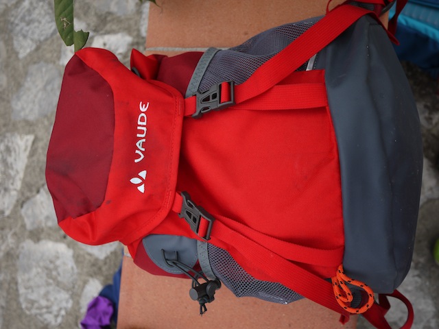 Bunt geht es bei Vaude zu! In sechs verschiedenen knalligen Farben ist der Kinderrucksack Puck 10 erhältlich. Da ist für jedes Kind ein passendes Modell dabei. Bei der Tour an der Hossinger Leiter fiel auf, wie stark unser Tester am Rücken schwitzte. Hier kann Vaude noch ein wenig nachbessern. Etwas zu minimalistisch fällt das Rückenteil von diesem Kinderrucksack aus. Leer wiegt der Puck 10 nur 530 Gramm, das ist etwas mehr als ein Päckchen Kaffee. Im Gegensatz zu mancher Kaffeekanne hat dieser Kidnerrucksack ein Volumen von zehn Litern. Es gibt für größere Kinder den Puck 14 mit 14 Litern. Punkten kann der Puck, egal in welcher Ausführung, mit seinem robusten Außenmaterial. Auch wenn der Kinderrucksack am Felsen entlangschrammt, er ist davon nicht beschädigt. Gegen Regen ist der Vaude Puck mit einer Regenhülle ausgerüstet. Vom Aufbau her kann der Vaude Kinderrucksack überzeugen. Er ist übersichtlich aufgeteilt und lässt sich sogar mit einem Trinksystem ausstatten. Mit einem besseren Rückenteil könnte der Puck 10 uns vollkommen überzeugen.