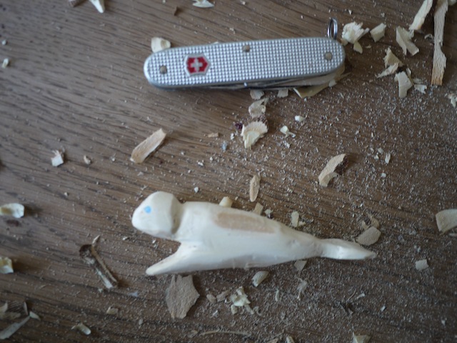 Zum Schluß schmirgeln wir den Seehund ab und haben ein wirklich schönes Tier geschnitzt.