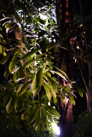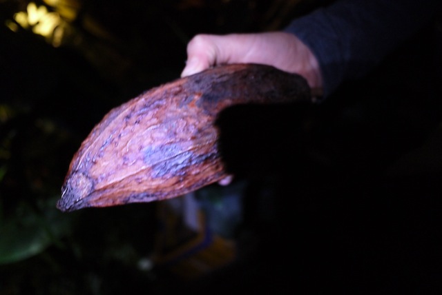 Botanischer Garten in der Nacht: Kakao im Schein der Taschenlampe