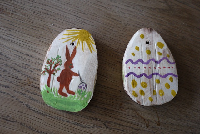 Eine Osterbastelei wie zu Uropas Zeit lernte ich in einem Freiluftmuseum kennen. “Die Leute hatten noch keinen Kunststoff, aber dafür viel Holz und Zeit!” erklärte der ältere Herr und zeigte uns wie aus einem Stück Ast ein Osterei entsteht. Dazu benötigte er nur ein Taschenmesser mit Säge und Ahle (Stechdorn), Schnur, Schleifpapier, Wasserfarben und Pinsel.