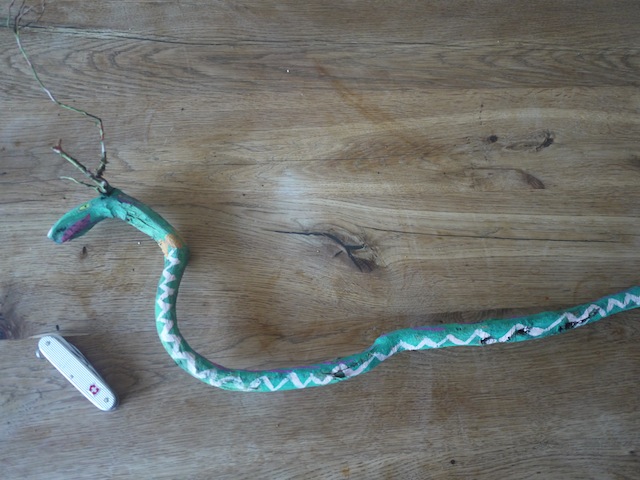 Wurzel schnitzen hat im Bayerischen Wald, den Alpen aber auch in Asien eine lange Tradition. Aus den Wurzeln entstehen Gesichter oder Fabeltiere. Wir schnitzen heute mit den Kindern einen feurigen Drachen fürs Blumenbeet. Dazu benötigt Ihr lediglich ein Stück Wurzel, Taschenmesser und Malkasten. Ein ideales Werkstück für Anfänger.