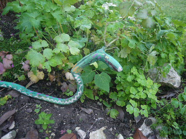 Damit der Drache die Farbe behält, ist es ganz gut wenn Ihr ihn mit Klarlack einsprüht. Ab ins Beet mit diesem Hingucker, den die Kinder selbst geschnitzt haben.