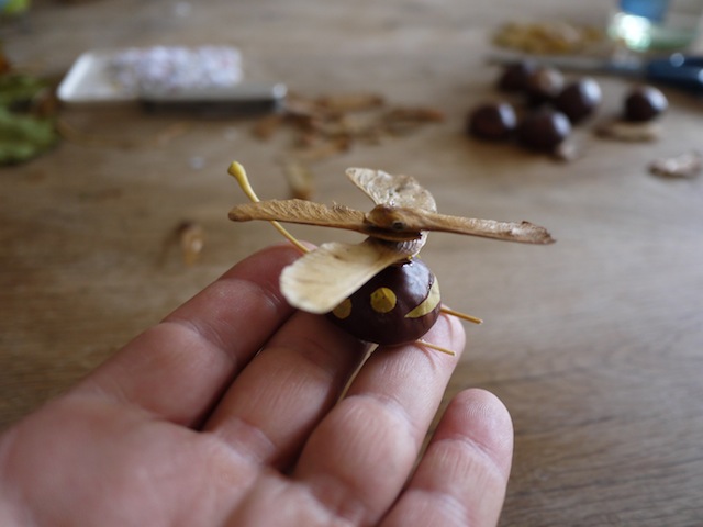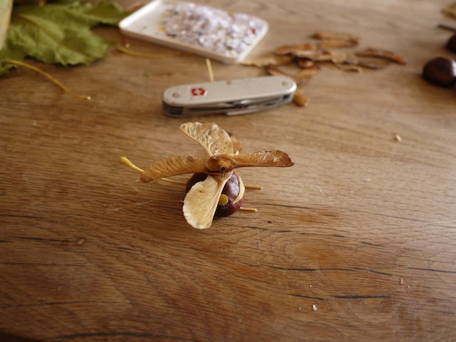 Kinder basteln mit Kastanien: So wird ein Helikopter draus