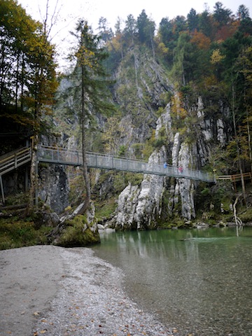 Reger Verkehr herrschte zwischen der bayrischen und österreichischen Grenze. Lange Jahre kamen hier in Rucksäcken Zigaretten, Rum, Kaffee und andere Sachen am Zoll vorbei ins Land. Ein acht Kilometer langer Wanderweg zwischen Schleching und der Wallfahrtskirche Klobenstein in Österreich erinnert an diese Zeit. Er ist leider unmöglich mit dem Kinderwagen zu schaffen, weil es unterwegs steile Stücke und Treppen gibt. Nehmt für diese Tour bitte eine Kindertrage mit. Besonders die Hängebrücke über die Tiroler Ache und deren wildes Wasser beeindruckt die Kinder. An der Talstation der Geigelsteinbahn wandert Ihr mit den Kindern los. Bei der Geigelsteinstraße führt rechts der Schmugglerweg hinüber nach Österreich. Über Wiesen geht es in den Wald hinein. Hier soll 1919 ein Jagdaufseher einen Wilderer aufgelauert und erschossen haben. Ihr überquert die Brücke über den Maisbach und haltet Euch an der Abzweigung rechts. Hier seht Ihr auch wieder den Wegweiser “Schmugglerweg”. Eine Brücke führt über den Totenmannbach und immer parallel zur Tiroler Ache. Weiter geht es durch den Wald auf dem Schmugglerweg. Serpentinen führen nun weiter runter ins Tal. Nun steht Ihr an der Entenlochklamm. Durch diesen Engpass muss sich die Tiroler Ache quetschen. Ihr überquert nun den Fluss auf einer leicht schaukelnden Hängebrücke. Auf der anderen Uferseite seht Ihr bereits die malerische Wallfahrtskirche. Unmittelbar davor steht der Klobenstein: Ein Felsen der in der Mitte gespalten ist. Wer möchte kehrt in dem Gasthaus bei der Kirche ein. Auf dem gleichen Weg wandert Ihr mit den Kindern wieder zurück.