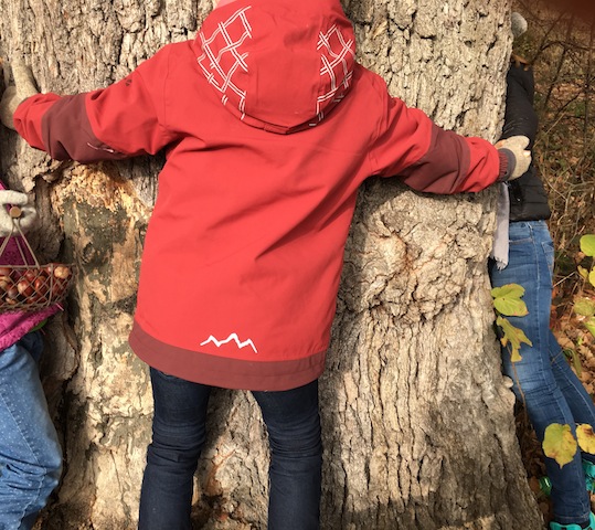 Der eh schon rutschige Forstpfad verwandelt sich nun in eine Schmierseifenbahn. Umdrehen? Eigentlich haben wir es nur noch 15 bis 20 Minuten bis zur Burg Staufeneck. Während die Jeans und Wanderhosen bald an den Beinen kleben, hat unsere Testerin in ihre Vaude Jacke gut lachen. Selbstverständlich sind dort auch die Reißverschlüsse so konstruiert, dass alles trocken bleibt. Bald ist die Burg erreicht. Die neueren Gebäude beherbergen ein Sterne Restaurant und Hotel. So wie wir jetzt aussehen, zum Teil mit Dreck verschmierter Kleidung, gehen wir besser dort keinen Kaffee trinken. 27 Meter ist der erhaltene Haupturm aus massiven Buckelquadern hoch. Oben angekommen geht noch einmal ein Wolkenbruch auf unser hernieder. Hier zeigt sich ein besonderer Clou, den sich der finnische Designer dieser Outdoorjacke hat einfallen lassen. In der Kapuze der Innenjacke sind zwei große Löcher. Diese sind für die Augen gedacht, denn dadurch haben die Kinder einen tollen Gesichtsschutz bei eisiger Kälte, wie wir sie im Moment erleben. Wie es sich für eine echte 3 in 1 Jacke gehört, können die Kinder die Innen- oder Außenjacke auch solo anziehen. Das Material ist von bluesign zertifiziert und lässt für Outdoorkids keine Wünsche offen. Die Vaude Kids Lysbille 3 in 1 ist so gut verarbeitet, dass sich später einmal die jüngeren Geschwister darüber freuen können. Eine vielseitige Jacke für Kinder, die bei jedem Wetter draußen aktiv sind.
