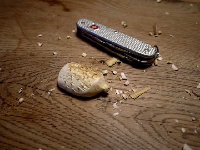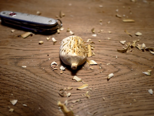 Wieder kommt die große Klinge zum Einsatz. Rundet damit den ganzen Igel ab.