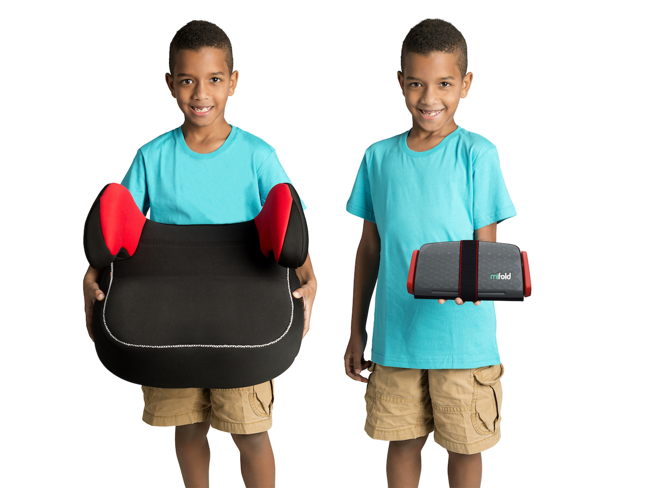 handelsübliche Kindersitze, auf die Höhe des Erwachsenen. Zehn Mal kleiner als normale Kindersitze, ist „mifold“ genauso sicher und platzsparend. Und das Beste: Er ist so klein und praktisch. Dadurch lässt er sich im Schulranzen oder Rucksack verstauen. Ein weiterer Vorteil von diesem genialen Kindersitz: Ihn könnt Ihr Zweitkindersitz auf Reisen oder im Taxi nutzen. Um diesen praktischen Begleiter auseinander zu falten, benötigt Ihr keinen Meisterbrief in Origami. Das Ganze ist kinderleicht! Mit einer Landkarte habt Ihr mehr Probleme, diese wieder auf ihr ursprüngliches Format hinzubekommen.
