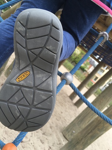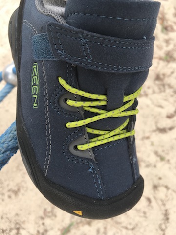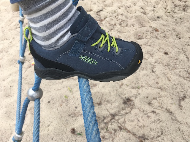 Im Gegensatz zu den Erwachsenen, sind die Kinder vielseitig unterwegs. Mal gehen sie zu Fuß zum Kindergarten, das andere mal nehmen sie den Roller oder das Laufrad. Auch hier ist der Keen Jasper mit seiner flexiblen Sohle ein guter Begleiter. Was aber auch wichtig ist: Die Gummisohle ist abriebfest und hält manche Vollbremsung mit dem Laufrad aus. Wenn es am Morgen zeitlich, wieder einmal, etwas knapp ist, dann liegt es sicher nicht an diesem Kinderschuh. Die Kinder brauchen nur reinschlupfen und das Schnellschnürsystem anweden. Klettverschluss anwenden und ab geht es in die Schule oder den Kindergarten. Kinderleichter geht es kaum. Entsprechend einfach lässt sich auch der Klettverschluss in seiner Länge verstellen. Wenn das Kind einmal dickere oder dünnere Socken trägt ist das notwendig, damit es immer einen perfekten Halt in den Schuhen hat. Ausgerüstet ist dieser Kinderschuh mit Cleansport NXT™. Auf natürliche Weise lassen sich damit üble Gerüche aus dem Schuh vermeiden. Unserem Tester interessiert das alles herzlich wenig. Er klettert erst einmal über die Strickleiter zur Rutsche hinauf. Auch das macht der Keen Jasper alles mit. Das Kind fühlt sich von diesem Schuh nie eingeengt oder in den Bewegungen behindert. Ganz im Gegenteil. Der Jasper hat, wie die meisten Keenschuhe, die markante Zehenkappe. Diese schützt die kleinen Füße und gibt den Kleinen die nötige Sicherheit. Vor allem für Piloten die mit ihrem Laufrad dahinheizen ist die Zehenkappe ein wichtiges Details: Es schützt nämlich auch das Material der Schuhe. Farblich ist der Keen Jasper eher zurückhaltend und lässt sich problemlos kombinieren. Wie genial dieser Schuh ist, dass zeigt sich daran, weil unser Tester darüber kein Wort verliert. Ein Schuh den die Kinder nicht merken, ist die beste Lösung.