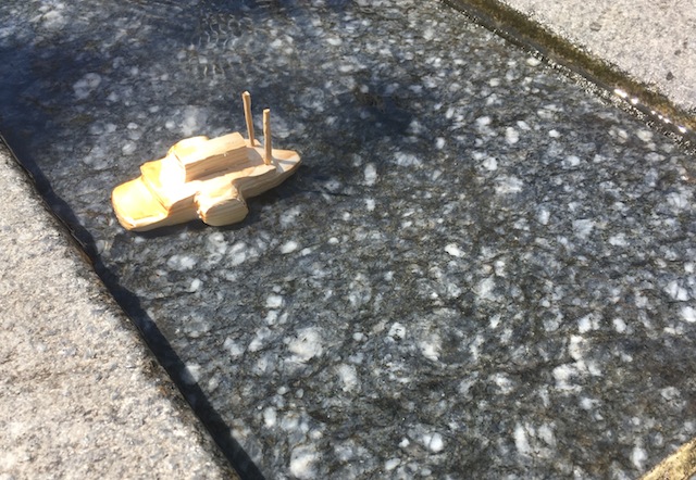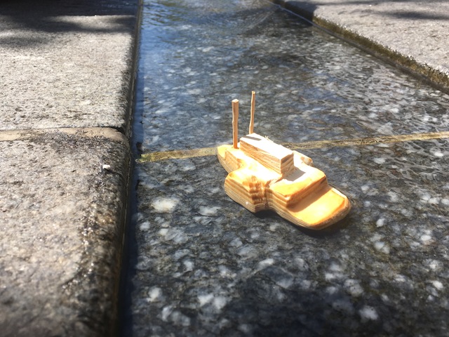 Zeit den Flußdampfer ins Wasser zu lassen. Hier zeigt sich, dass unser geschnitztes Modell dieselben guten Eigenschaften wie das Original hat. Es liegt gut im Wasser und Wellen machen dem Steamboat nichts aus. Ahoi!