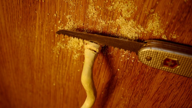 Das dünnere Ende rundet Ihr mit der kleinen Klinge ab.
