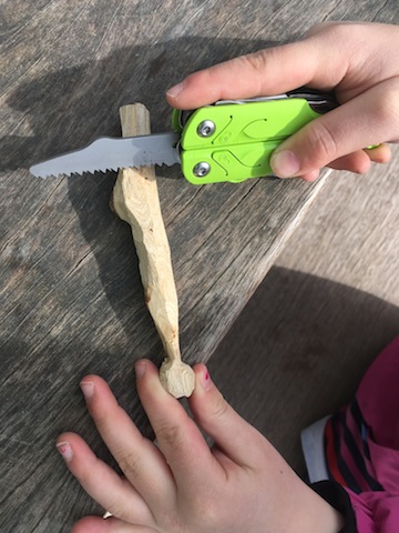 Sechs Müsliriegel wiegen, mit Verpackung, 160 Gramm. Das Leap Multitool für Kinder bringt nur 138 Gramm auf die Waage und hat deutlich mehr zu bieten als nur Kalorien. Zusammengelegt ist es 8,3 Zentimeter klein und passt so in jede Hosentasche. Unser Outdoorkind radelt zu Freunden. Im Garten stehen einige alte Bäume rum und die haben beim letzten Sturm Äste verloren. Klar, das Kind will schnitzen. Es klappt aus dem Leatherman Leap die Säge aus. Diese arretiert zuverlässig und mit etwas Druck auf einen Knopf der mit einem Schloss gekennzeichnet ist, lässt es sich wieder einklappen. Die Säge beißt sich durch den Ast. Nun klappt unser Outdoorkind die Säge wieder ein und dafür das Messer aus. Beides gleichzeitig ausgeklappt zu haben ist nicht möglich und erhöht die Sicherheit. Zusätzlich lässt sich diese Messer einbauen. Die Klinge ist 5,5 Zentimeter lang und ordentlich scharf. Damit schnitzt das Kind einen Wichtel aus Holz. Genug geschnitzt. Autsch, das steckt ein Holzsplitter im Finger. Kein Problem, denn das Leap hat eine Pinzette dabei. Der große Vorteil daran: Diese ist fest integriert und lässt sich nicht verlieren. Das haben die Konstrukteure von Leatherman schlau gelöst. Dem Finger geht es wieder besser. Bevor das Kind wieder nach hause radelt, kommt das Multitool noch einmal zum Einsatz. Schon auf der Herfahrt hat sich das Kinder geärgert, dass am Fahrrad etwas klappert. Mit dem Kreuzschlitz Schraubendreher zieht es ein paar Schrauben fest. Weil es schon dabei ist, überprüft das Kind noch andere Schrauben am Fahrrad. Auch davon sind ein paar locker. Hier hilft der “normale” flache Schraubendreher weiter. Auch so einen hat das Leatherman Leap. Aber Moment mal, das Vorderrad ist auch etwas sehr flexibel. Ein klarer Fall für die große Kombizange von diesem Multitool. Danke des ergonischen Griffs bekommt das Kind genügend Druck auf die Schraubenmutter. Das Fahrrad ist wieder frei von klappernden Schrauben und es ist Zeit für den Heimweg. Kinderleicht lässt sich das neue Leap bedienen und ist in den knalligen Farben rot, blau und grün erhältlich. Alles in der gewohnten Leatherman Qualität.