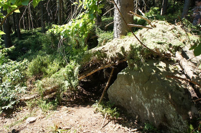 Bitte reißt keine Pflanzen aus, wenn Ihr diesen Unterstand baut. Echte Outdoorer reißen auch keine grünen Zweige von den Bäumen oder Sträuchern.