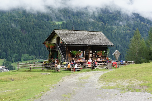 Hier im Lesachtal fehlt etwas. Obwohl genau deswegen kommen die Familien hierher. Keine riesigen Hotels verschandeln mit ihrer Betonoptik die Landschaft. Ebenso ist es mit den Stahlträgern von Seilbahnen und Skiliften. Hier im Lesachtal ist die Natur in Ordnung. Massentourismus? Fehlanzeige. Zu asphaltierte Flächen, damit tausende von Autos dort parken können? Hier nicht. Wer in Ruhe wandern möchte, der ist hier in dem Kärtner Tal richtig. So entspannt wie im Tal, geht es auch auf den Almen zu. Es ist nicht der Duft von Frittierfett, der die Wanderer schon gut hundert Meter vor der Hütte begrüßt. Auch weisen kein Verpackungsmüll und leere Getränkedosen am Wegesrand die Richtung zur Alm. Natürlich ruhig geht es hier zu. Die Alpen brauchen keine Mallorca Partyschalger Beschallung. Die fehlt hier auch niemanden. Beim Wandern mit den Kindern zur Steineckenalm gibt es einen kurzen Weg. Dieser ist auch für Kinderwagen mit dicken Reifen geeignet, allerdings brauchen die Eltern schon ein wenig Kraft in den Armen und dem Handporsche hinauf zu schieben. In Obergail geht es los. Wandert mit dem Kinderwagen zum Obergailerbach. Vorbei an den Schranken. Nun braucht Ihr, je nach Kondition, den Kinderwagen schiebend etwa 30 bis 40 Minuten hinauf zur Steineckenalm. Der Weg ist perfekt ausgeschildert und das GPS-Gerät darf ausgeschalten bleiben. Wenn Ihr mit größeren Kindern wandert, dann haben wir eine etwas längere Strecke zur Steineckenalm, die es wert ist!