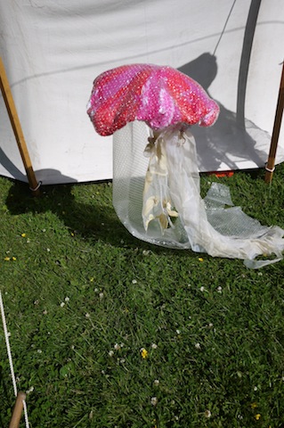 “Die sieht aber hübsch aus!” freut sich eine Mutter, als sie ihr Kind von der Geburtstagsfeier eines Klassenkameraden abholt. Dabei ist noch die Mutter der Gastgeberin skeptisch gewesen. Sie hatte mich gefragt, was ich für Bastelideen habe um die Kinder bei der Geburtstagsparty zu beschäftigen. Ich schlug vor “Schnitzen“, da meinte die Mutter nur “Zu gefährlich!” mein nächster Vorschlag “Mit Ton arbeiten!” schlug sie ebenfalls aus und irgendwann landete ich bei der Qualle. Leider konnte ich der guten Bekannten kein fertiges Exemplar zeigen, weil meine Qualle der Sturm abgerissen hatte. Wenig begeistert nahm sie meinen Vorschlag an.