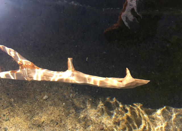Steckt dort einen dünnen Zweig als “Schnorchel” vom U-Boot hinein. Die Nautilus von Kapitän Nemo ist klar und legt ab!