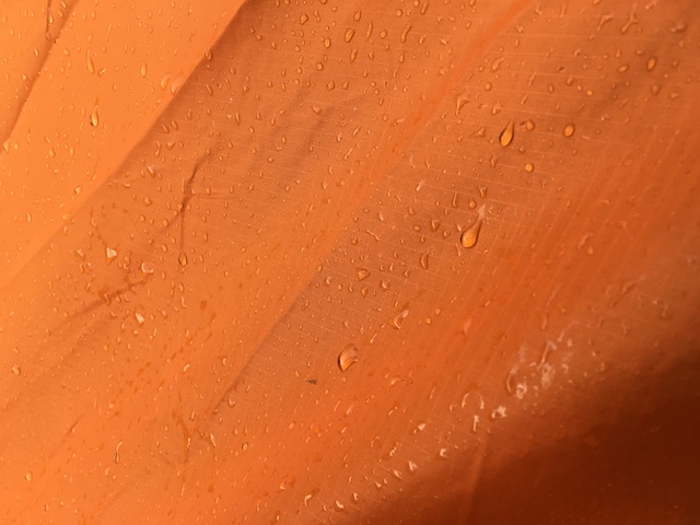 “Also ein Zelt mit einer Wassersäule von nur 2.000 mm kaufe ich nicht!” sagte ein Kunde neben mir im Outdoorladen. “Da hat ja meine Wanderjacke schon mehr!” 300 mm. Das ist ungefähr die Wassersäule von einem Regenschirm. Ein klassischer britischer Regenschirm kommt auch noch weniger. Dieser ist aus hochwertiger Baumwolle gefertigt. Warum hält dieser trotzdem dicht? Weil er perfekt gespannt ist. Auch bei den Zelten gilt dies. Egal wie hoch die Wassersäule vom Außenmaterial ist, kommt es auf die Spannung an. Hängt die Zeltplane schlapp durch, dann ist es absehbar wie schnell sich das Innere in einen Tropfsteinhöhle verwandelt: Genauso feucht und kühl. Ebenso nervig ist es, im Regen um das Zelt zu hetzen wie ein Hase hinter dem die Füchse her sind um mit dem Hammer oder einen Stein die Heringe einzuklopfen. Schließlich muss die Außenplane vom Zelt gut gespannt sein. Da ist es mit dem Marmot Limelight 4 P deutlich einfacher. Es ist für vier Personen ausgelegt, doch für die kann es ein wenig eng sein, auch wenn die Konstruktion vom Gestänge überzeugt. Für den schnellen Aufbau sind die robusten Stangen aus 9 mm Alu farbig markiert. Marmot hat die Stangen so angeordnet, dass der Platz möglichst effektiv genutzt ist. An den Seiten steht das Zelt steil hoch und das schafft doch einigen Komfort. Niemand muss, auch wenn er im Zelt sitzt, ständig gebückt sein. Wer mit dem Fahrrad unterwegs ist, kann die Packtaschen in den Apsiden unterbringen.