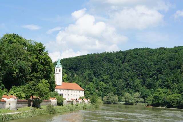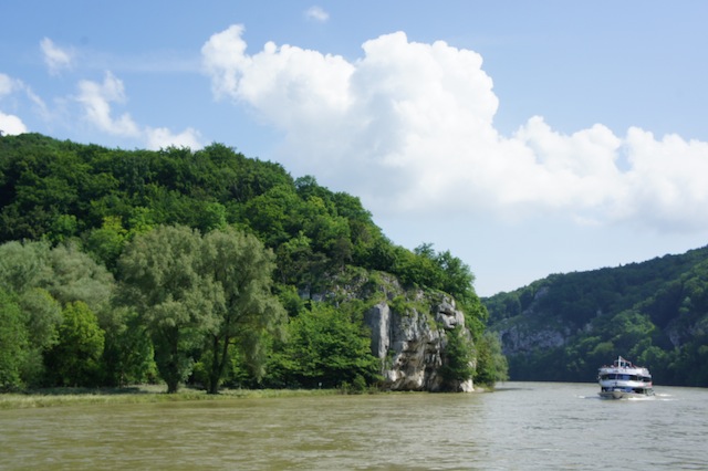 “Drei mal!” jubelt das Kind. Nun ist der Vater an der Reihe ” Zweil mal! Ich lieg vorne!” Frustriert schnappt sich der Vater einen weiteren Kieselstein und lässt ihn über das Wasser der Donau springen. Jetzt schweigt das Kind “Jaaaaaaaa! Vier mal!” triumphiert der Erwachsene. Auf dem Kiesstrand vor dem Kloster Weltenburg halten die Outdoorkids die Füße in die Donau. Das kühle Wasser tut bei der sommerlichen Hitze gut. Der Weg zu dieser alten Benediktinerabtei ist perfekt für Familien und sogar für den Kinderwagen geeignet. Lediglich auf dem letzten Abschnitt ist ein wenig Improvisation wichtig. Verschiedene Wege führen auf einem Höhenrücken von der Stadt Kelheim zum Kloster Weltenburg. Der Donauweg hat einen entscheidenden Nachteil: Er führt erst wunderbar am Ufer entlang und hat dann einen steilen Anstieg parat, der mit dem Kinderwagen nicht zu schaffen ist. Hier hilft nur eine Kindertrage. Alle anderen wandern zuerst von Kelheim hinauf zur Befreiungshalle. Der Weg ist gut ausgeschildert und führt ohne Treppen steil hinauf zu diesem Monument der bayerischen Könige. Diese Ruhmeshalle soll an die Befreiungskriege gegen Napoleon erinnern. Der Ausblick ist wunderbar, für die Kinder ist die Befreiungshalle eher weniger prickelnd. Wenn Ihr dort angekommen seid, habt Ihr den schwersten Teil der Familientour geschafft. Nun geht es, von kleineren Anstiegen abgesehen, immer auf einer Höhenlinie dahin. Nach der Befreiungshalle wandert Ihr in den Wald und folgt den Schildern. Unterwegs kommt Ihr an Bauwerke der Kelten vorbei. Das seltsame Volk errichtet hier einen Wall. Auf Infotafeln bekommt Ihr die Zeit der Kelten nähergebracht. Angenehm ist es durch den Wald zu wandern und für die Outdoorkids ist es außerdem kurzweillig. Ihr steigt ab vom Wald und kommt an eine kleine Straße, diese endet an der Donau. Wer keinen Amphibien-Kinderwagen hat, der wartet hier auf die schmalen Holzboote, Zillen genannt, die Euch hinüber zum Kloster Weltenburg bringen. Auf dem Kiesstrand legt Ihr an. Besichtigt in Ruhe die Klosterkirche. Hier haben sich die beiden Barockkünstler Asam verewigt. Ein Geheimtipp: Wandert an der Kirche vorbei und steigt über einen kleinen Wald auf. Plötzlich lichten sich die Bäume und Ihr steht auf einen wunderschönen Wiese. Dort befindet sich eine kleine Wallfahrtskirche, Frauenbergkirche, und es gibt diverse Ausgrabungen aus keltischer und römischer Zeit. Dazu gehören auch die Fundamente von einem römischen Kleinkastell auf dem Frauenberg. Steigt wieder ab und jetzt kommt ein weiterer Höhepunkt für die Kinder. Mit dem Ausflugsdampfer schippert Ihr zurück nach Kelheim durch den Donaudurchbruch. Links und rechts erheben sich die Kalkfelsen durch denen sich die Ur-Donau gearbeitet hat.