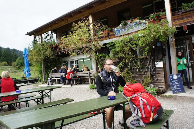 Beim Wanderparkplatz Lederdorn, an sonnigen Wochenenden findet sich dort normalerweise kein freier Platz mehr, geht es los. Raus mit dem Kinderwagen und ab zur Frasdorfer Hütte. Nach dem Parkplatz Lederdorn links über die Brücke wandern. Der breite Waldweg ist wunderbar ausgebaut und beschildert. Was Ihr sicher zuhause lassen könnt ist das GPS Gerät, außer jemand möchte aus archivarischen Gründen diese Tour aufzeichnen. Selbst den Blick auf die Wegweiser könnt Ihr Euch eigentlich bei dieser Wanderung mit Kinderwagen sparen. Folgt den anderen Wanderern, auch sie steigen zur Frasi auf! Anfänglich geht es moderat bergauf und rechts neben Euch gluckert, je nach Wasserstand, die Ebnather Ache. So geht es wieter bis Ihr Zellboden erreicht. Was jetzt folgt bringt alle die mit dem Kinderwagen wandern ins Schwitzen: Zwei längere S-Kurven führten steil hinauf. Da kommen die Eltern hinter dem Handporsche ins Schnaufen. Doch keine Sorge, nach diesem Anstieg ist es geschafft. Wenig hundert Meter und die Frasdorfer Hütte ist zu sehen. Es winken die bunten Sonnenschirme zu Euch herüber. Darunter stehen Bierbänke. Mountainbikes sind vor der Hütte abgestellt. Es hat sich gelohnt bei dieser Tour den Kinderwagen bis hier rauf zu schieben.