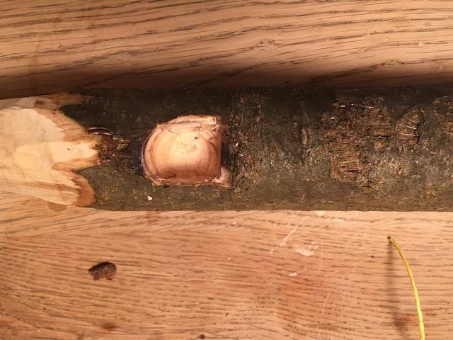 Im Turm der Rapunzel gab es auch ein Fenster. Schließlich brauchte das schöne Mädchen dort oben in Ihrer Wohnung auch Licht und frische Luft. Mit der großen Klinge vom Taschenmesser schnitzen wir zuerst die Umrisse vom Fenster in das Holz. Mit dem Messer heben wir nun Schicht um Schicht vom Holz heraus. Arbeitet Euch so tief in das Holz vor, wie möglich. Denkt bitte daran, dass Rapunzel keine Wohnung im Erdgeschoss, sondern ganz oben unter dem Dach vom Turm hatte. Tolle Aussicht, aber wenig Besuch wie wir alle aus dem Märchen wissen.