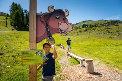 Kinder lieben den Gamskogel, und auch die Eltern lassen sich schnell von der Begeisterung anstecken. Auf dem Abenteuerspielplatz „Weltcup der Tiere“ direkt bei der Gamskogelhütte dreht sich alles um Höchstleistungen der alpinen Tierwelt, mit vielen spannenden Beispielen zum selber Ausprobieren: Klettern im Spinnennetz, Balancieren auf einem Baumstamm oder Seil, Erschnuppern von Gerüchen, beim Bienenflug oder Telefonieren mit dem Waldtelefon. Aufregende neue Erfahrungen gibt es auch beim „KUHparKUHr“ mit sieben Stationen zwischen der Gamskogel-Bergstation und dem Seekarsee. Klein und Groß können sich beim Milchkannenstemmen, beim Kuhfladen-Hüpfen oder beim KUH-Memory und dem Quiz rund um den wahrscheinlich ältesten Energydrink der Welt – die Milch – miteinander messen. Jede Menge Spaß bietet auch in diesem Jahr „Zauchi‘s Kinderfest“. Am Sonntag, 8. Juli, verwandeln sich der „Weltcup der Tiere“ und die Gamskogelhütte in eine bunte Erlebniswelt auf knapp 1.900 Meter Höhe.