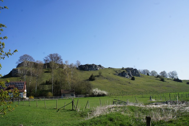 Die älteren Leser erinnern sich noch daran: Vor etwa 10 bis 15 Millionen Jahren schlug bei Steinheim ein Meteorit ein. Mit geschätzten 72.ooo Km/H (Zum Vergleich: Der Erdumfang beträgt 40.007,863 Kilometer) traf der Himmelskörper auf die heutige Ostalb und hinterließ dort einen Krater, der bis heute zu erkennen ist: Das Steinheimer Becken. Es komplett zu umrunden ist für die meisten Kinder zu viel. Immerhin ist der Wanderweg um die 20 Kilometer lang. Wir gaben uns für die Testtour mit der Hälfte zufrieden. Hier wartete alles auf unseren Testschuh was ein leichter Wanderschuh für Kinder können muss. Optisch hat der Meindl Acri Junior unserem Tester sofort zugesagt. In vier Farbstellung ist der Kinderschuh erhältlich. Kleine Prinzessinnen kommen hier weniger auf ihre Kosten, weil rosa leider fehlt. Bei dem Meindl Acri Junior geht es weniger um das Aussehen, sondern mehr wie komfortabel sich damit gehen lässt. Meindl verwendet für dieses Modell eine eigene Sohle. Hier setzen die Bergschuster aus Oberbayern auch farblich Akzente. Steil geht es vom Sontheimer Wirtshäusle los. Wir steigen auf zum Burgstall. Ein Wiesenpfad, das Gras ist noch von Tau bedeckt, ist eigentlich die beste Möglichkeit um hier auszurutschen. Die Ultra Grip Junior II Sohle behält immer Bodenkontakt und unser Tester spaziert fröhlich voran. Oben auf dem ehemaligen Steinbruch angekommen bietet sich ein faszinierender Panoramablick. über das Steinheimer Becken. Etwa fünf Millionen Tonnen wog der Meteorit. Wenn Ihr das Gewicht aller steinernen Quader aus denen die Cheopspyramide errichtet ist zusammenlegt, kommt Ihr auf ebenfalls fünf Millionen Tonnen. Wir folgen weiterhin dem Wanderweg auf dem der Gabelhirschkopf abgebildet ist. Immer wieder haben wir auf der Schwäbischen Alb kurze, aber steile Anstiege. Hier ist eine griffige Sohle und ein guter Halt im Schuh wichtig. Der Meindl Acri Junior ist ein robuster Kinderschuh und lässt sich auch in der Freizeit oder im Alltag einsetzen. Weil es sich um einen Halbschuh handelt, von Experten auch Low Cut genannt, fällt dieser weniger als Outdoorschuh auf. Anstatt mit Gore-Tex ist der Meindl Kinderschuh mit dem Clima und Nässeschutz ausgerüstet. Der Vorteil für Euch: Dadurch ist der Preis moderater und diese eigene Membrane funktioniert auch tadellos. Wie gewohnt finder der Fußschweiß, bei unserem Tester ein echtes Problem, den Weg aus den Schuh und der Regen bleibt draußen. Wer auf dem Weg von der Schule oder beim Wandern in einen plötzlichen Wolkenbruch gerät, behält wenigstens trockene Füße.
