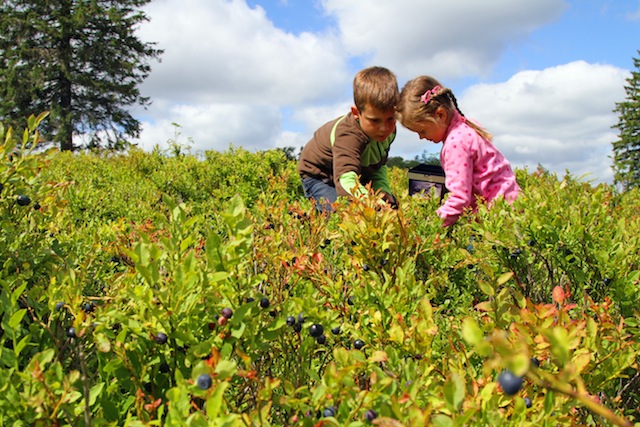 Kinder sammeln Blaubeeren in der Hochheide Kahler Asten
