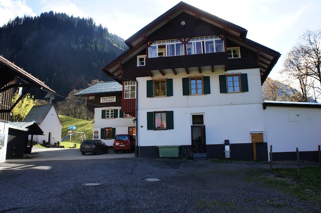 Folgt dem Weg zur Alpe Eschbach auf 949 Metern Höhe. Von weitem seht Ihr die Fahnen vor dem Haus wehen. Hier lohnt sich eine Einkehr. Bis ins 19. Jahrhundert ist dieser idyllische Platz nur eine Sammelstelle für das Vieh der Oberstdorfer gewesen und erst seitdem eine Alpe. Folgt den Wegweisern Buchrainer Alpe. Jetzt kommt ein Teil der Wanderung, der den Kindern besonders gut gefällt: Der Rappenalpenbach und und der Bacherlochbach. Bald steht Ihr vor dem Gasthaus Einödsbach. Willkommen im südlichsten Ort von Deutschland! Es lohnt sich dort eine Pause einzulegen und die kulinarischen Besonderheiten des Allgäus zu geniessen. Auf dem gleichen Weg kommt Ihr wieder zurück zum Parkplatz Faistenoy.