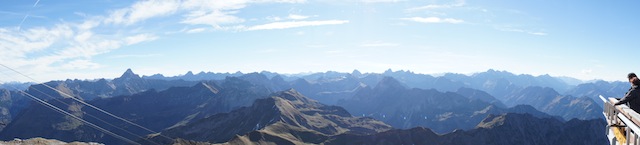 Wann ist die schönste Jahreszeit im Allgäu? Im Winter, wenn die Loipen gespurt sind, Eltern und Kinder mit Alpinski über die Pisten flitzen oder mit Schneeschuhen durch die Winterlandschaft stapfen. Andere Outdoorer finden, dass das Frühjahr die idealste Jahreszeit hier in den bayerischen Bergen ist. Auf manchen Gipfeln strahlen in der sanften Sonne die Scheereste, wie frisch gewaschene Tischtücher und die Bergwelt präsentiert sich in all ihren prächtigen Farben. “Gar keine Diskussion!” würgen andere Wanderer jedes Gespräch darüber ab. Sie finden dem Sommer im Allgäu am schönsten, wenn die Kinder in den malerischen Seen zum Baden gehen können. Eine andere Fraktion ist überzeugt, dass der Herbst nirgends so schön ist, wie im Allgäu. Anstrengend und für größere Kinder ist der Aufstieg von Oberstdorf hinauf zum Nebelhorn. Wer kleinere Kinder dabei hat, kommt auch in den Genuss von diesem Gipfel und dem Faltenbachtobel. Mit der Gondel geht es bequem und flott bergauf. Startet am Parkplatz an der Nebelhornbahn. Beeindruckend ist die Skisprungschanze. Jedes jahr findet hier die Vierschanzentournee statt. Nach dem Ski-Stadion steht Ihr vor einem Schilderbaum: Schlagt den Weg Richtung Faltenbachtobel. Durch eine wilde Schlucht mit etlichen Wasserfällen geht es bergauf zur Vorderen Seealpe. Schon der Weg ist pures Abenteuer für die Kinder und Teenager! Waghalsige Steige auf Gitterrosten führen Euch über die wilden Wasser. Unter Euch rauschen die Bergbäche hinunter. In allen denkbaren Farben strahlt der Bergwald. Mühsam geht es hinauf. Doch es naht ein Zwischenziel: Die Vordere Seealpe. Ab hier stehen Euch noch etliche anstrengende Höhenmeter bevor! Hier bei der Alpe befindet sich auch eine Station der Nebelhorn-Bahn. Wenn es den Kindern zuviel ist, dann steigt hier doch zu. Weiter führt ein asphaltierter Weg hinauf zur Pumpstation Kalter Brunnen. Ihr wandert durch das Hochtal. Neben Euch verläuft die Seilbahn. Links sind die markanten Gipfel vom Geißalphorn und dem Geißfuß, mit 1.953 m sowie 1.981 m zu sehen. Jetzt kommt eine der steilsten Passage dieser Tour. Hier ist es hilfreich Trekkignstöcke dabei zu haben. Bald ist die Seilbahnstation Höfatsblick und die DAV Hütte Edmund Probst Haus erreicht. Wer möchte kann hier übernachten. Für die Kinder ist das ein Abenteuer. Auch hier besteht die Möglichkeit in die Gondel zu steigen oder von hier ab zu wandern. Jeder so wie er mag.