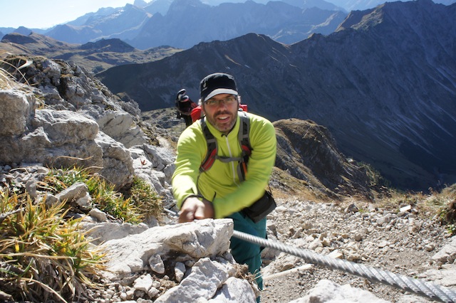 Es lohnt sich auf jeden Fall in der DAV Hütte einzukehren. Es steht das Finale bevor und der Weg zum Gipfel hat es noch einmal in sich. Wenn den Kindern die Kraft fehlt, dann gondelt mit der Seilbahn die letzten 300 Höhenmeter hinauf. Zwei Möglichkeiten bieten sich an um auf das Nebelhorn zu kommen. Nach der Station Höfatsblick führt ein Weg links weg. Nach wenigen hundert Metern teilt er sich. Wenn die Kinder weniger bergerfahren sind und schon schwere Beine haben, der folgt dem Weg mit der Nummer 1 a. Laut dem Wegweiser sind es eine Stunde bis zum Gipfel, aber wie sagte ein Bergkamerad so schön“ Mit Wegweisern ist es wie mit Gebrauchsanweisungen. Nicht alles glauben was da steht!“ Den Weg zum Gipfel kann man schwer verfehlen, denn manche Gondolieres steigen, nach dem sie die letzten Stufen vom Ausstieg der Seilbahn bis zum Gipfelkreuz zu Fuß zurück gelegt haben, auch bis zur Station Höfatsblick ab. Dort nehmen die nächste Gondel und schweben hinab ins Tal. Doch was echte Kerle sind, die lassen sich nicht in eine Seilbahn quetschen. Wer Bergerfahren ist und genügend Kraft hat, der folgt dem Weg mit der Nummer 3. Dieser führt steil auf einen Sattel hinauf. Teilweise sind manche Stellen und Tritte mit Drahtseil gesichert. Von hier bietet sich ein genialer Blick zum Entschenkopf oder den Großen Daumen. Immer auf dem Grat geht es hinauf zum Gipfel. Dort angekommen ist es ein Problem sich an den Gondolieres vorbei zu drücken, welche den Gipfel belagern. Jeder möchte mit der Handy-Kamera oder dem Fotoapparat ein Bild knipsen vom Gipfel des 2.224 Meter hohen Nebelhorns. Der Seilbahn sei Dank! Ein Panorama mit 400 Gipfeln bietet sich hier! Raus aus dem Gedränge und abgestiegen zum nächsten Geheimtipp. Entweder geht es über den schroffen Sattel hinunter zur Station Höfatsblick oder über den breiten Weg durch das Trogtal. An einer kleinen Hütte, kurz nach der Seilbahnstation, steht ein Schilderbaum. Dieser weist zum Zeigersattel. Auf dem Weg Nummer vier ist diese Anhöhe in weniger als einer halben Stunde erreicht. Hier lohnt es sich eine Rast einzulegen und diesen Blick hinunter zum Seealpsee zu genießen. So sieht das Allgäu in manchem Bilderbuch aus. Auf demselben Weg zurück und nun beginnt der Abstieg. So wie man hochmarschiert ist, geht es auch wieder zurück nach Oberstdorf. Auf der Vorderen Seealpe lohnt sich eine Einkehr. Hier gibt es zwei Möglichkeiten zum Abstieg. Über die im Winter beliebte Rodelbahn oder den Faltenbachtobel. Zurück zum Parkplatz an der Nebelhorn-Bahn. Zu welcher Jahreszeit ist es wohl im Allgäu am schönsten?