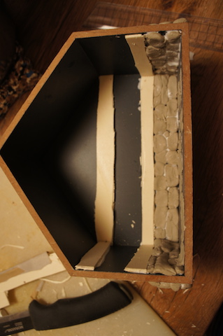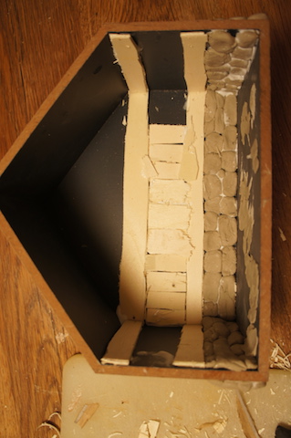 Klebt jeden Stein einzeln an die Seitenwände. Etwa ein Drittel der Höhe sollte die Steinmauer hoch sein. Wichtig ist, dass Ihr diese außen UND innen hochzieht.