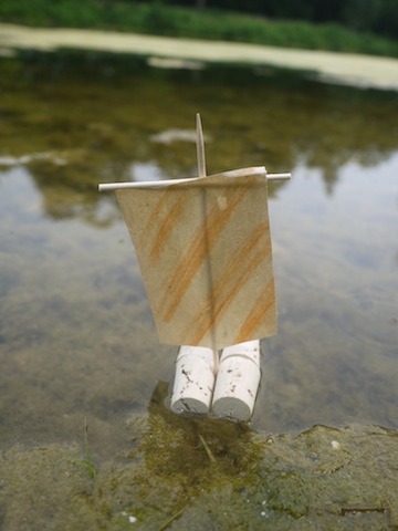 Steckt jetzt ein Spießchen als Mast durch diesen Schlitz.
