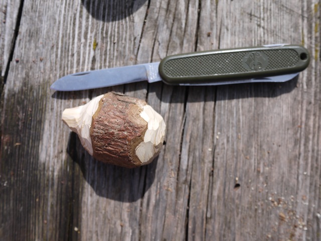 Schnitzt mit der großen und kleinen Klinge die Form der Birne. foto (c) kinderoutdoor.de