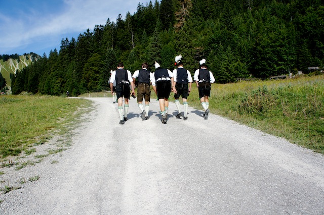 Warum Funktionskleidung, wenn es im original bavarian Ethnolook auch geht. foto (c) kinderoutdoor.de
