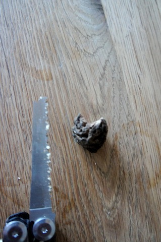 Endlich sind die Outdoorkids daheim mit den gesammelten Schätzen, ihren Baumperlen, angekommen. Jetzt wollen die Kinder nur eines: Sofort mit dem Basteln loslegen. Wie bei einer Perle die in der Muschel eingeschlossen ist, müssen wir unsere Baumperle von der Rinde befreien. Schnitzt vorsichtig mit der großen und kleinen Klinge vom Taschenmesser die umgebende Rinde ab. Je kleiner die Baumperle ist, umso schwieriger ist es. Manche sind so groß wie der Kern einer Zwetschge, andere haben die Ausmaße von einem Taubenei.