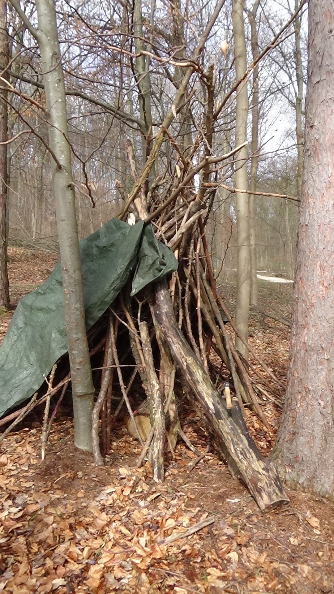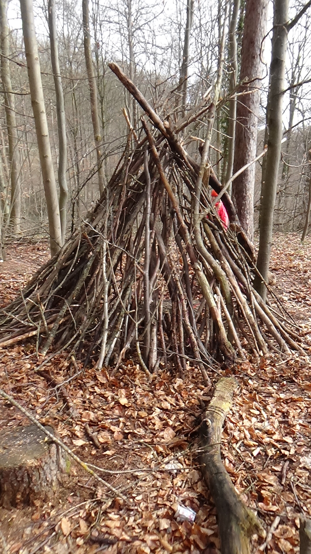 Folgt den Pfeilen der Schatzsuche und schon kommt das nĂ€chste Spiel. Jedes Kind sucht sich eine geraden Ast. Ihr spitzt ein Ende davon mit dem Taschenmesser zu. Nun haben die Kinder drei Minuten Zeit möglichst viel Laub aufzuspießen.