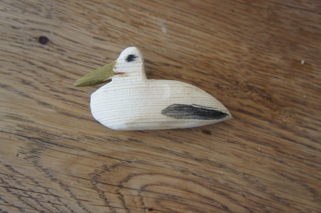 Mit der großen Klinge schnitzen wir der Seemöwe das Hinterteil rund. Wenn Ihr Euch die Körperform von diesem Vogel anseht, dann erkennt Ihr, wie windschnittig das Tier ist.