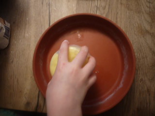 Ob Ihr Trockenhefe oder frische Hefe verwendet ist unerheblich. Der Teig ist dann bereit zu ruhen, wenn er sich von den Wänden der Schüssel löst. Beginnt deshalb erst auf einer hohen Stufe mit dem Durchkneten. Die Hefe will im Teig “arbeiten” und sich ausdehnen. Dazu braucht sie aber einen warmen Platz. Deckt mit einem Geschirrtuch die Schüssel zu und stellt sie an einen deutlich wärmeren Ort. Etwa 20 Minuten sollte dort die abgedeckte Schüssel stehen. Wichtig ist: Lasst bitte das Geschirrtuch drauf, auch wenn für die Kinder der Reiz kaum auszuhalten ist, immer wieder einmal nachzusehen, ob der Teig wirklich größer ist.