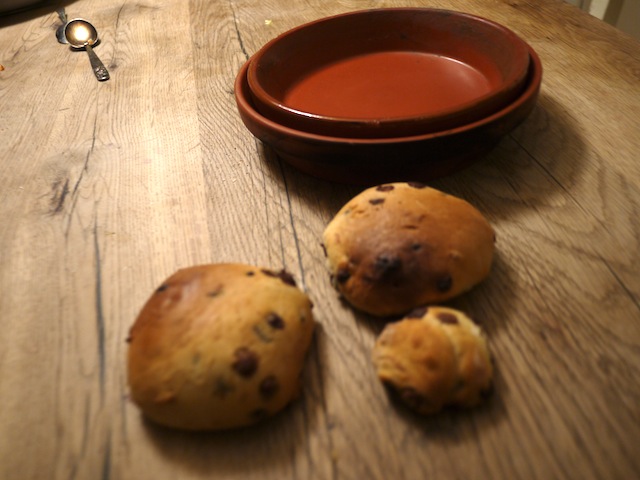 Legt die Schokobrötchen in den Untersetzer und gebt den Deckel darauf. Ab damit in die Glut. Beim Backofen habt Ihr eine Scheibe um zu sehen, was im Ofen passiert. Bei unserem Ofen ist es noch einfacher. Der “Deckel” hat, wie es sich für einen Untersetzer gehört, ein Loch in der Mitte. Dort passt ein Stock hinein und damit könnt Ihr ihn abheben. Frisch am Lagerfeuer mit Tee oder Kinderpunsch schmecken die Schokobrötchen am besten!