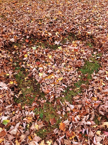 Bei unserem Land-Art im Herbst mit Kindern zeichen wir ein Herzs ins Laub. foto (c) kinderoutdoor.de
