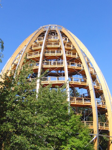 “Ich fühle mich wie ein Eichhörnchen!” sagt ein Kind am Baumwipfelweg in Neuschönau (Bayerischer Wald). Der Steg führt Euch bis zu einer Höhe von 25 Metern hinauf. Dabei gibt es einiges zu beobachten: Eichhörnchen flitzen die Stämme fleißig rauf und runter, Vögel flattern über Euch hinweg und der 1.300 Meter lange Steg endet bei dem spektakulären Baumturm. Dieser sieht wie ein übergroßer Baumzapfen aus uns in weiten Wendelstegen, die auch mit dem Kinderwagen befahrbar sind, geht es hinauf bis auf 44 Meter Höhe. Da stehen dann die Kinder mit offenen Mündern und haben einen genialen Blick über den Bayerischen Wald. vom Baumturm aus, wirkt dieser wie ein grünes Meer. Das ganze Jahr über hat der Baumwipfelpfad geöffnet und er gehört zu den größten weltweit. Wenn Ihr vom Ausflug über die Baumkronen zurück seid, dann solltet Ihr unbedingt das Tierfreigelände Neuschönau besuchen. Dort bekommt Ihr in den Gehegen die tierischen Bewohner vom Bayerischen Wald zu sehen. Wölfe, Hirsche, Luchse und Bären zeigen sich dort. Das ganze Jahr über ist der Baumwipfelpfad geöffnet und lohnt einen Besuch.