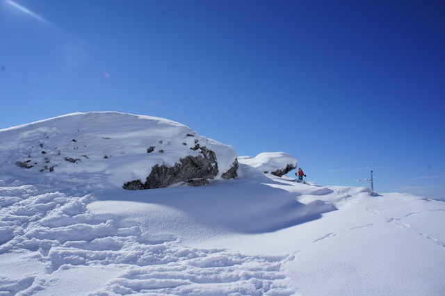 Ralph Eggart: Die übliche Sicherheitsausrüstung (Schaufel, Sonde, LVS-Gerät, EH-Set, Biwaksack) muss immer mit. Zusätzlich auch bei milden Temperaturen eine warme Jacke die mindestens die Gipfelrast angenehmer macht aber auch in einem Notfall wertvolle Dienste leisten kann.