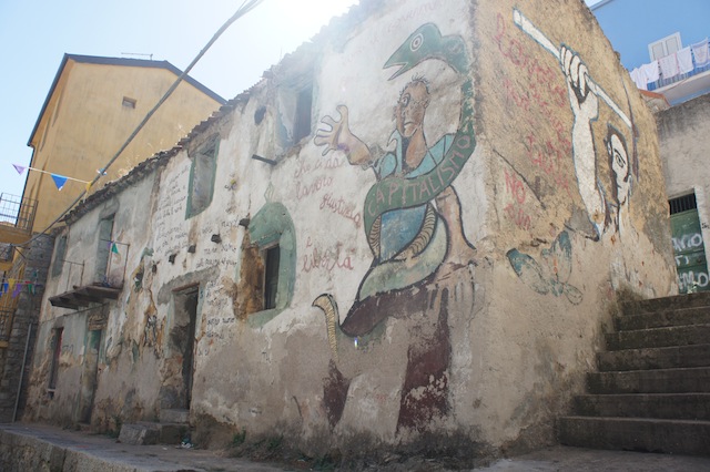 Orgosolo ist das wohl am meisten besuchteste Dorf von Sardinien. Als in den 70er Jahren auf der Hochfläche Pratobello ein Truppenübungsplatz entstehen sollte, leisteten die Dorfbewohner Widerstand. Ein Teil ihres Protestes sind die Malereien auf den Häusern gewesen.