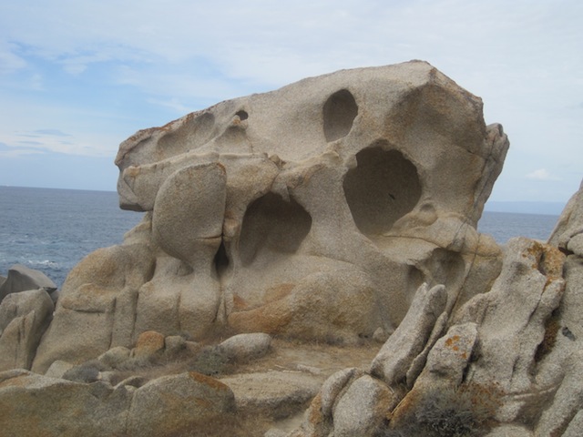 Weiter geht zu der Sehenswürdigkeit vom Capo Testa: Dem Leuchtturm. Wie durch einen Irrgarten aus Granitfelsen verläuft der Weg dorthin. Für die Kinder ist die Versuchung sehr groß und sie klettern aus die von Wind, Meerwasser und Sonne geformten Felsen. Bald habt Ihr einen wundervollen Blick auf die Nachbarinsel von Sardinien: Nur zwölf Kilometer entfernt ist Korsika. Diese Aussicht ist es wahrscheinlich nicht gewesen, weshalb sich in den 70er Jahren im Valle della Luna  Hipies in den Felshöhlen angesiedelt haben. Den Eingang dorthin erkennt Ihr leicht: Er führt durch Felsblock, der in der Mitte gespalten ist. Der Weg führt uns hinunter zur Cala Spinosa. Hier erwartet Euch noch einmal ein grandioser Aussichtspunkt. Den Kindern ist das allerdings egal, die wollen lieber klettern. Ihr erreicht nun die Häuser von Guardia del Corsaro. Von hier führt Euch der Wanderweg weiter zum Dorf Capo Testa. Nach der Ortschaft bietet sich noch einmal die Möglichkeit zu baden. Nach wenigen hundert Metern habt Ihr wieder den Parkplatz erreicht von dem Ihr mit den Kindern losgewandert seid.