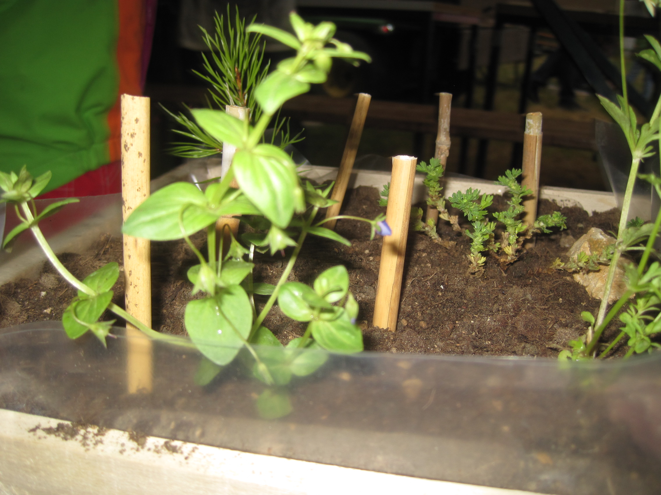 Gießt den Minigarten mit Wasser an.