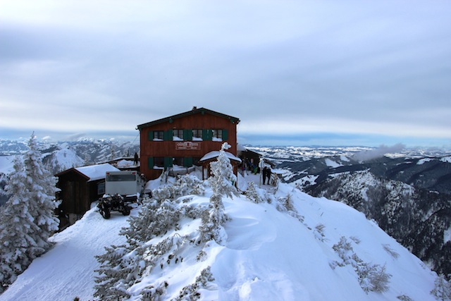 “Da drüben seht Ihr die Tiroler Alpen und dort zeigen sich die Schweizer Berge!” erklärt ein Bergfex am Gipfel vom Breitenstein den interessierten Kindern. “Gleich da drüben, dieser schroffe Berg der wie ein Backenzahn vom Braunbären aussieht, dass ist der Aggenstein. Über ihn verläuft die Grenze zu Tirol, ” berichtet der alte und erfahrene Bergsteiger weiter. Die Kinder stehen mit ihren Eltern am Gipfel vom Breitenstein. Das ist der Hausberg von Pfronten. Ein Berg der das ganze Jahr über ein reizvolles Ziel für Familien ist. In meinen Wanderbüchern (Die schönsten Wanderungen von Hütte zu Hütte mit Kindern oder Geheimnisvolle Pfade Bayerische Hausberge) findet Ihr immer wieder Touren die zum Breitenberg führen. Im Winter erwartet die Familien dort eine Rodelbahn die sich auf jeden Fall lohnt. Vom Anspruch her ist diese mittelschwer. Ihr kommt völlig entspannt dort oben an. Mit dem Vierersessellift Hochalpe geht es hinauf. Wer möchste stapft noch eine knappe halbe Stunde bergan, bis er die Ostlerhütte und den Gipfel vom Breitenberg erreicht. Die Hütte ist frisch umgebaut und Andrea Heiligensetzer die neue Wirtin auf 1.838 m. Wunderbar ausgesetzt liegt diese urige Berghütte. Hier lohnt es sich auch zu übernachten. ans Einschlafen denkt keiner, wenn es die Naturrodelbahn runtergeht. Gemütlich ist es am Start, der gut 6,5 Kilometer langen Abfahrt. Eine steile Gerade führt in den Wald hinein. Der Schlitten baut gut Tempo auf. Eine S-Kmobination zwingt die Rodler dazu Geschwindigkeit rauszunehmen.