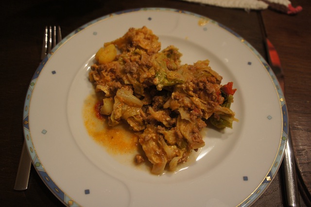 Der geschnittene Weißkohl kommt in den Topf. foto (c) kinderoutdoor.de