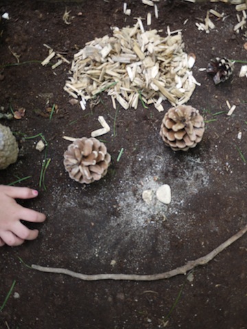 Landart ist ganz einfach: Mit Naturmaterialien legen die Kinder Gesichter von Waldwichteln. foto (c) kinderoutdoor.de