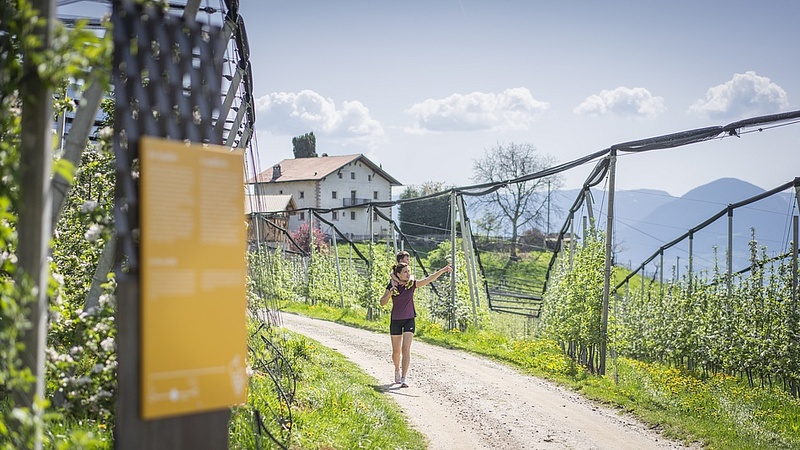 Zwischen Bacchus & Pomina lernt man alles über Apfelgärten und Weinberge – interaktiv und mit Genuss.Was macht ein Saltner? Wie lang dauert‘s von der Blüte bis zum Apfel? Und wer hat eigentlich die Pink Lady erfunden? Solche und andere Fragen beantworten die beiden durchgängig beschilderten, liebevoll gestalteten Themenwege Bacchus & Pomina, die in gut ein bis eineinhalb Stunden durch die Weinberge und Obstgärten der Südtiroler Gemeinde Schenna führen.